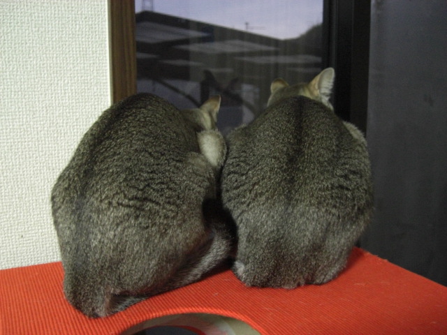 初日の出を見ようと、揃って窓の外を眺める2匹。