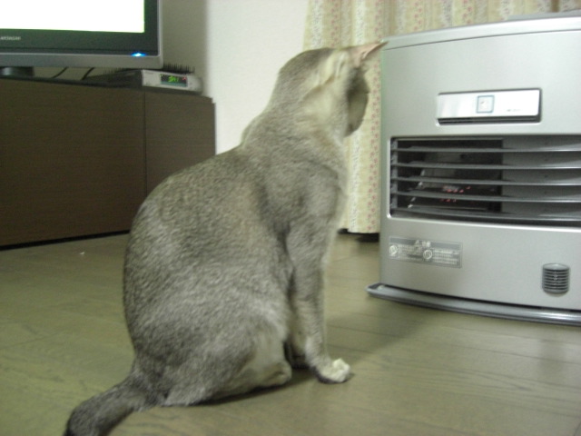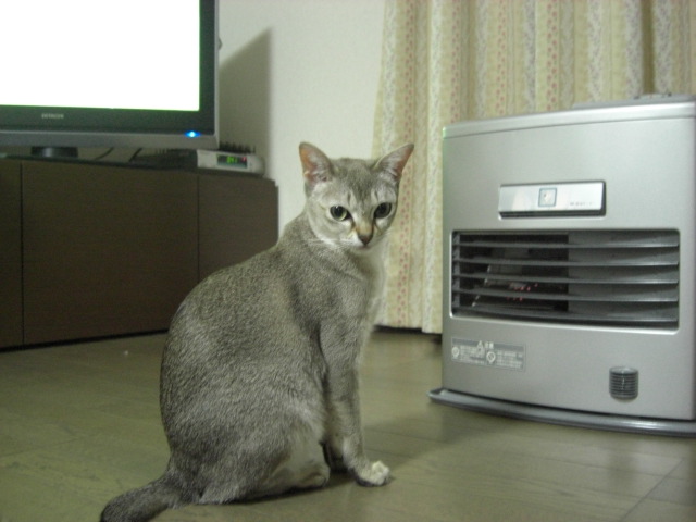 ファンヒーターの前でちゃっかり鎮座するライム。